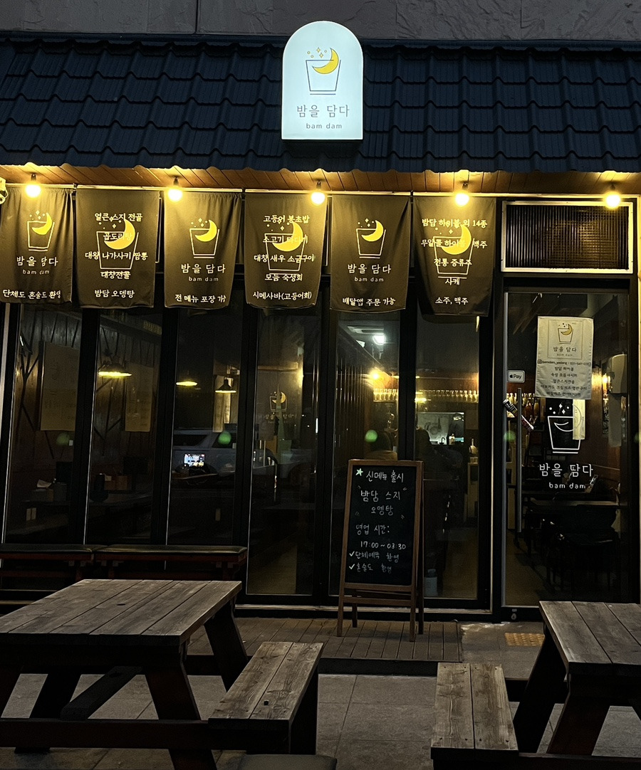 야당 이자카야 밤을담다는 조용하고 차분한 매장 주변 분위기가 맘에 들었어요.